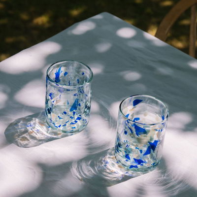 A set of two mouth-blown tumblers from the beautiful Balearic Islands.