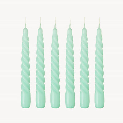 Twist Set of 6 Dinner Candles, H20 cm, Mint