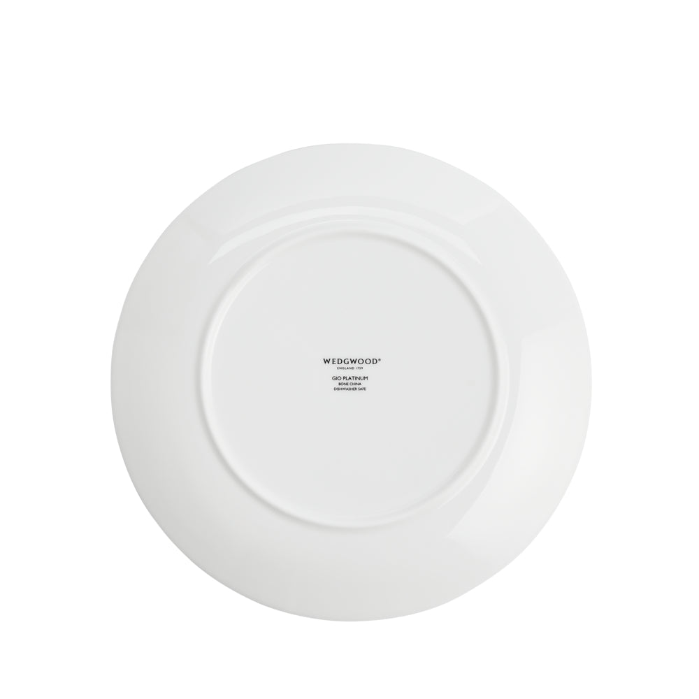 Wedgwood's Gio Platinum Plate brings geometric sophistication to everyday dining. Crafted from fine bone china in Indonesia, this 20cm plate features elegant platinum accents against crisp white, creating a timeless aesthetic. Perfect for special occasions or daily meals, this versatile piece can be beautifully layered with other Gio White and Gold pieces for a curated tablescape that reflects contemporary luxury with classical craftsmanship.