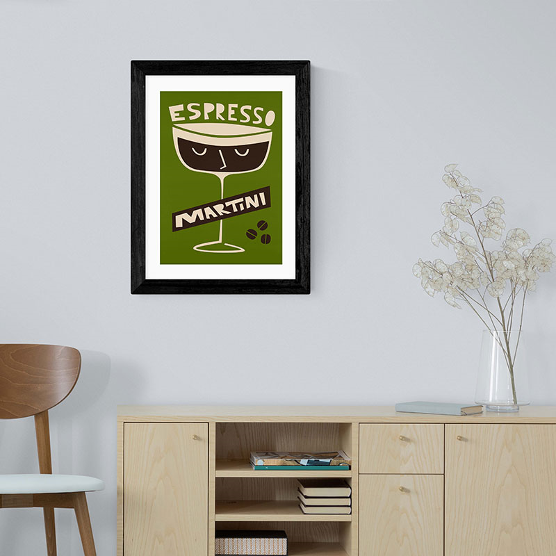 Fox and Velvet Espresso Martini Art Print, H44 x W35.5cm, Green