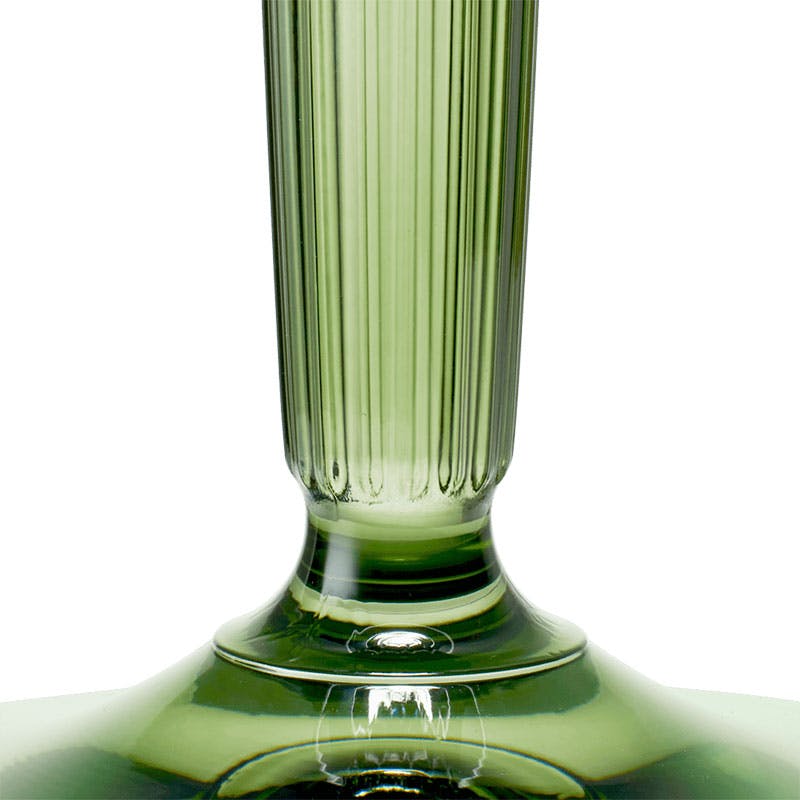 The grooves almost rise up and carry the round bowl at the top. Notice also the details, where the stem tapers both at the top and bottom – a clear reference to the design tradition that is the hallmark of a Hammershøi vase. The glasses come in a package of two red wine and white wine glasses, in either a clear version or a version with a green stem and base, which adds yet another new dimension to both the iconic grooves and the table setting.