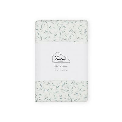 Organic Cotton Cot Fitted Sheet with Print, 120 x 60cm, Green Leaves