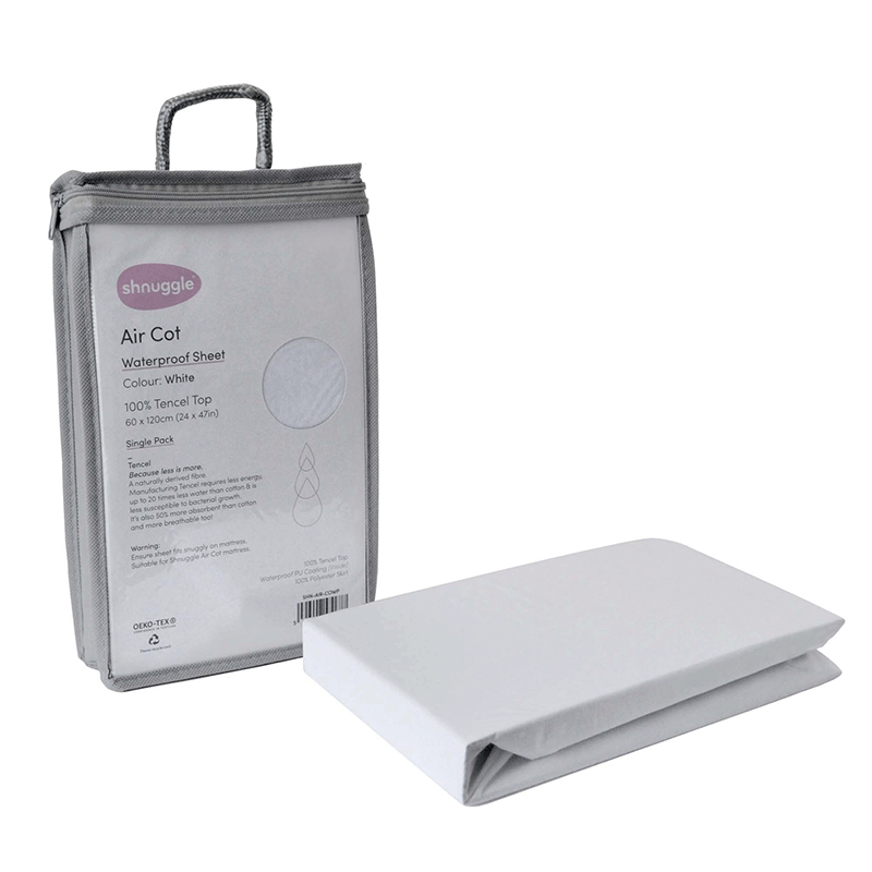Perfect protection for your shnuggle air cot mattress. super soft waterproof sheet made from a breathable, 100% tinsel jersey to create a dry and safe sleeping environment for baby.