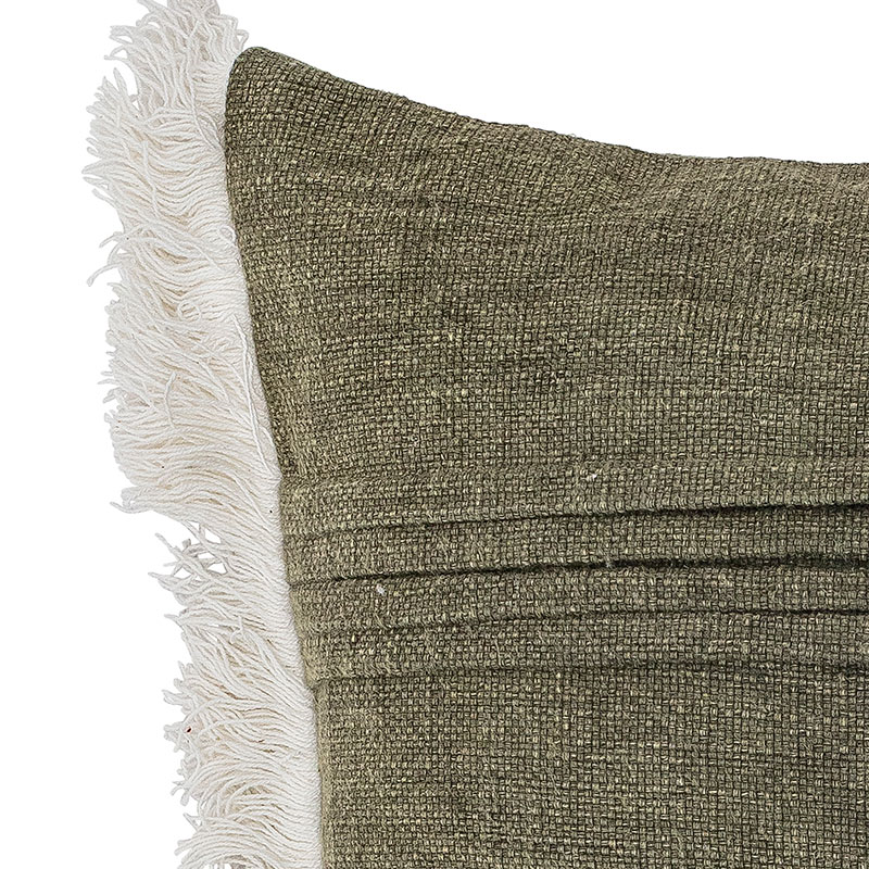 The He Cushion by Bloomingville is a nice and soft cushion in nordic design made of 100% cotton. It has beautiful pleated effects in green and contrast colored fringes.