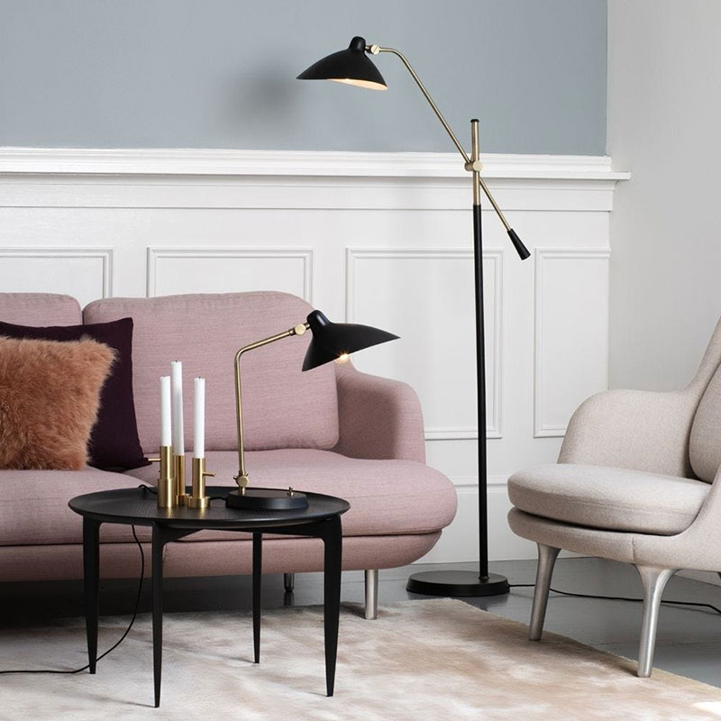 Designed in Banbury, the Milton Floor Lamp blends mid-century styling with modern functionality. Crafted from sturdy powder-coated steel with a hand-painted antique brass finish, this tall, freestanding floorlamp creates a solid design statement in any interior. The practical handle allows you to direct light perfectly over a sofa or armchair for reading, or position it at full height to stand as an elegant lighting fixture to illuminate the entire room.