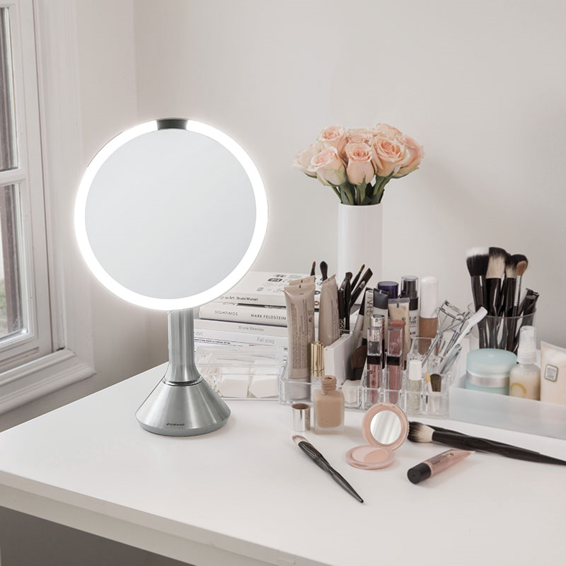 Simplehuman's Sensor Mirror combines intuitive technology with precision design, featuring a tru-lux light system that simulates natural sunlight for flawless makeup application. The brushed stainless steel design offers modern elegance for your vanity, while the automatic sensitive sensor activation and touch-control brightness provide effortless functionality. Cordless and rechargeable, it delivers exceptional clarity with 5x magnification to magnify details for comprehensive viewing.