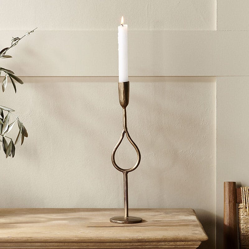 Regular price £40.00 Sale price £32.00 Save 20%Elevate your dining tablescape with the Padook forged iron candlestick holder. The blend of traditonal hand forged iron and the contemporary tear shaped design pair elegantly together, providing an interesting centre piece. The hand forged process adds texture and character to each candlestick holder. Curate a stylish vignette with a mix of sizes. The Padook candlestick holders are designed to hold a standard dining candle.