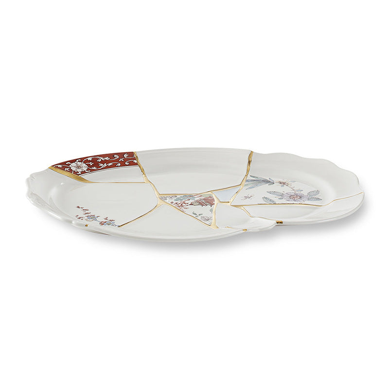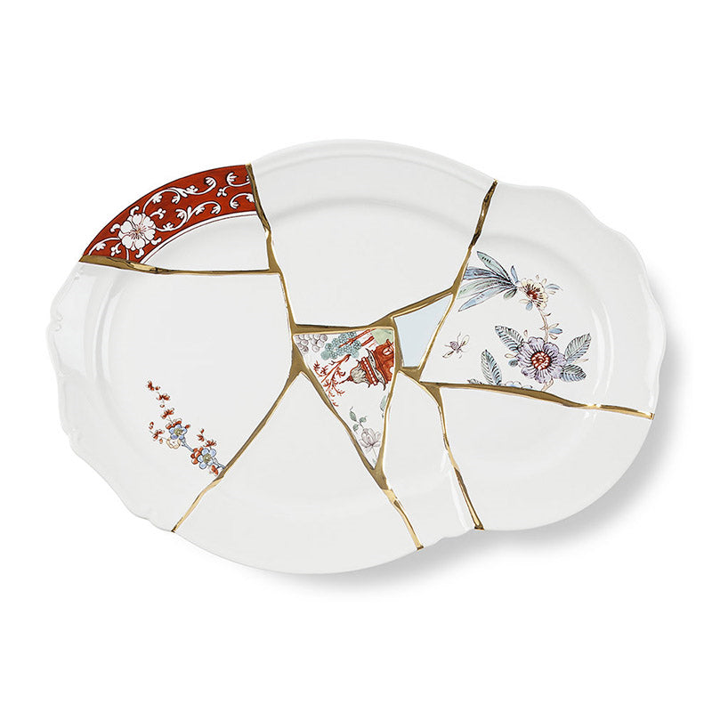 Bring distinctive design to your home with this Kintsugi serving tray from Seletti. Designed by Marcantonio Raimondi Malerba, it takes inspiration from Kintsugi, the Japanese art of repairing ceramics with gold and silver in respect to the object's history. Featuring porcelain fragments of various colours and patterns, the veins holding the pieces together are made from precious 24ct gold for an added touch of luxury. Pair this serving tray with more pieces from the Kintsugi range to complete the look.