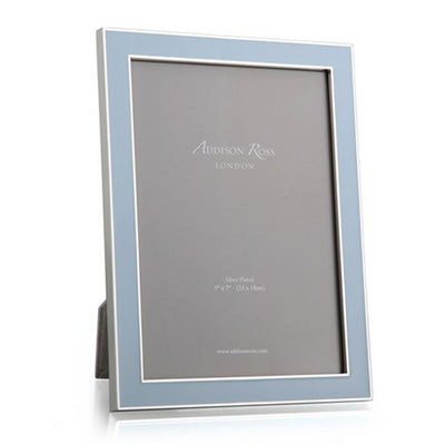 Addison Ross's Powder Blue Enamel Frame draws inspiration from classic design elements, combining a substantial 30mm wide enamel border with a refined curved silver edge. The luxurious dove grey velvet backing provides elegant contrast to the powder blue finish, while practical silver turn buttons secure photographs with sophisticated simplicity. Designed to complement any luxury interior setting, this designer picture frame transforms personal moments into thoughtfully presented memories.