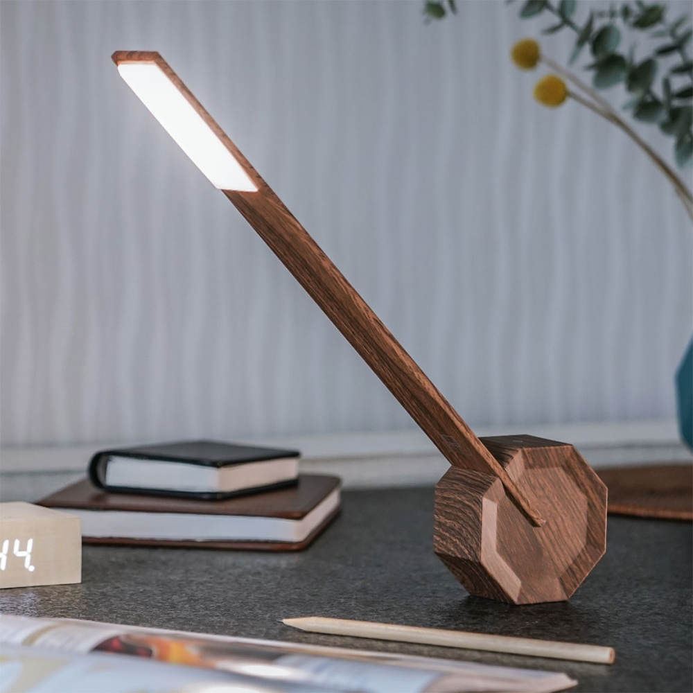 Gingko Design's Octagon One Desk Lamp features a gravity-defying octagonal base in ABS with walnut wood-effect finish, creating a minimalist modern industrial aesthetic. Its 36 high-quality LED beads provide powerful illumination through a diffuser for an even glow, while the innovative compact desklamp design allows for three positioning angles. With an impressive 50,000-hour LED lifespan and crisp 5500 °C colour temperature, this desk lamp delivers exceptional performance for both home and office use. Complete with touch control and built-in rechargeable battery for wireless functionality, this desklamp brings sophisticated versatility to any contemporary workspace.