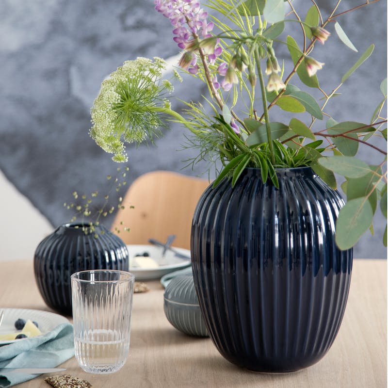 Regular price £74.00 Sale price £59.00 Save 20%Kahler's Hammershøi vase draws inspiration from quintessential Scandinavian design, distinguished by its characteristic furrows that create a captivating visual rhythm. Crafted with exquisite artisanal attention, each handmade piece in indigo glazed ceramic showcases subtle variations that celebrate its authentic craftsmanship. This generously proportioned, large vase not only serves as a striking decorative element for the modern home but also complements flower arrangements by allowing stems to appear elegantly elongated against its textured surface, creating an artistic and stylish statement piece.