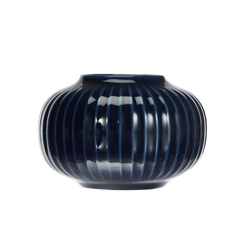 The Hammershøi Tea Light Holder in deep Indigo showcases Kahler's quintessential furrow design, bringing together artistic heritage and functional beauty. Inspired by Svend Hammershøi's distinctive works, this handcrafted decorative piece features the characteristic grooved texture that defines the collection. Perfect for creating ambient lighting in small spaces, the tealight holder works beautifully as a standalone accent or grouped with complementary pieces from the Hammershøi range, adding elegance to any candle display.