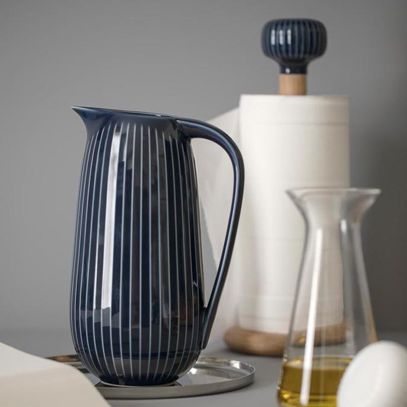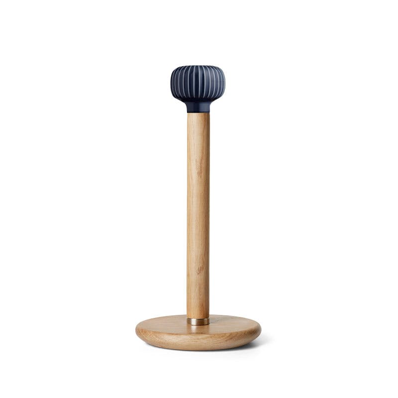 A realistic and elegant kitchen essential, this solid oak paper towel holder features a deep indigo ceramic topper with the classic Hammershøi ribbed design. The magnetic cap makes replacing rolls quick and simple.